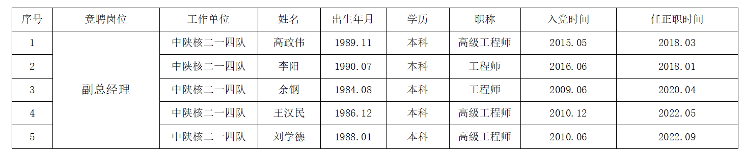 根據《中陜核工業集團二一四大隊有限公司副總經理崗位市場化選聘工作的實施方案》有關要求,現對資格審查通過的報名人員予以公示: