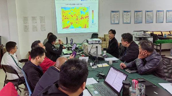 王義忠對黃泥坪重點(diǎn)區(qū)域的物探極化率平面成果給予了高度的認(rèn)可,并結(jié)合自身以往的工作經(jīng)驗(yàn)對黃泥坪地區(qū)的地質(zhì)背景和礦體的賦存情況做了詳細(xì)交流,為后續(xù)工作開展和綜合解釋提供了極大的幫助。