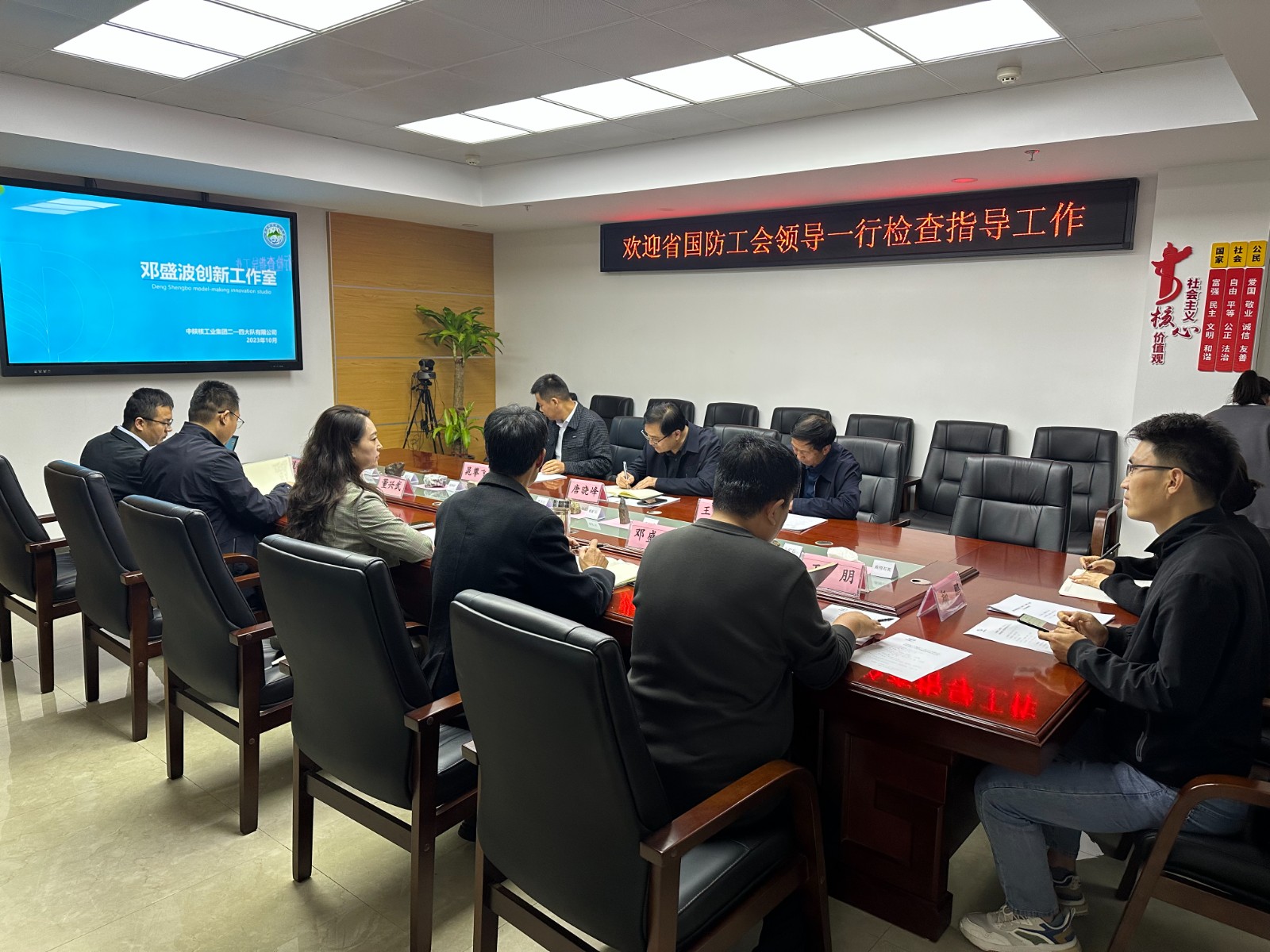 2023年10月24日下午,陜西省國防工會經(jīng)濟技術(shù)部部長唐曉峰、集團工會副主席劉晶等一行蒞臨公司預驗收鄧盛波創(chuàng)新工作室,公司黨委書記、董事長鄧盛波、工會主席董興武、總工程師王朋等陪同。