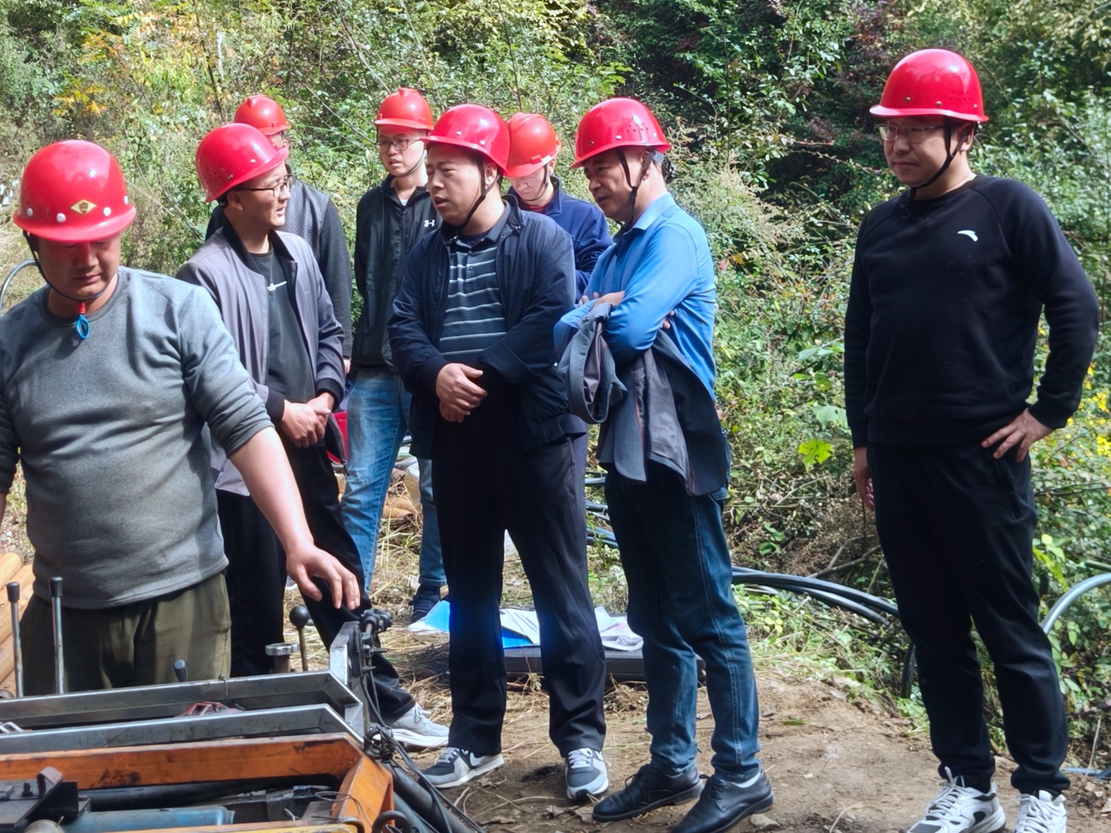 郭建軍一行到達項目部,首先由項目負責吳寶鵬將項目基本情況以及安全生產工作進行了詳細匯報。隨后前往正在施工的KNb0002施工現場進行了安全檢查,并對項目施工現場的安全生產標識及鉆探安全防護設施設備等進行了全面檢查,指出存在問題并提出整改要求。