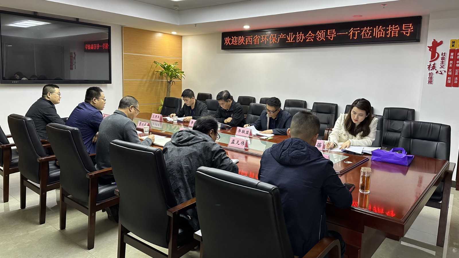 11月2日下午,陜西省環保產業協會黨支部書記李和平一行蒞臨公司考察調研。公司黨委副書記、總經理司金強、副總經理董興武參加座談會。