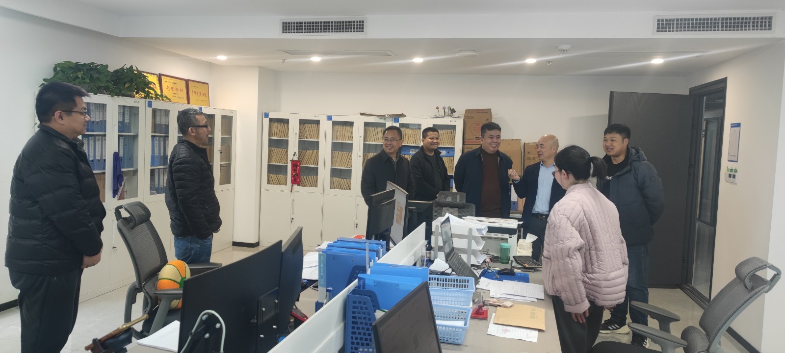 上午9時許,公司辦公大樓張貼著喜慶春聯,樓內暖意融融。公司領導班子成員逐層深入辦公樓內的各個單位、部門,進行新春慰問。與干部職工握手,互道新年好,詳細詢問大家的春節假期生活和返崗情況,對大家過去一年在工作中展現出的專業素養和敬業精神給予充分肯定。在交流中,公司領導著重強調了新一年的戰略目標與重點任務,勉勵大家迅速調整狀態,從“假期模式”切換到“奮斗模式”,以起步就是沖刺、開局就是決戰的勁頭,緊扣年度工作部署,在各自崗位上履職盡責、擔當作為。并囑咐各單位、各部門要切實做好節后復工復產的統籌安排,層層壓實責任,嚴守安全生產底線,特別是針對地勘行業特性,強化風險防控,確保各項工作平穩有序推進。
